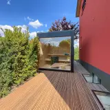 This designer garden sauna in Augsburg-Göggingen combines modern wellness comfort with a unique panoramic view. The generous glazing makes you feel like you are surrounded by greenery and allows you to enjoy the view of your own garden while you relax. The sauna is designed to blend harmoniously into its surroundings with its clear lines, without appearing obtrusive. The floor-to-ceiling panoramic window creates an airy, open feeling of space – a small retreat that simply leaves everyday life outside.