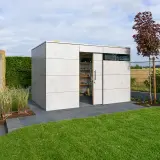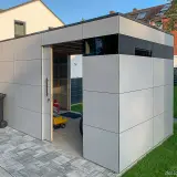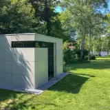 The clean lines and modern look ensure an elegant appearance, even in the XXL version. Even in large format, our designer garden shed looks like a distinguished structure whose high quality is evident. The confident colour choice (here: anthracite) underlines the confident design and at the same time has a timeless effect. The perfect choice for a garden shed of this size.