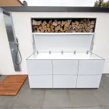 Para aprovechar al máximo el espacio limitado, nuestro armario alto para exteriores complementa perfectamente el conjunto. Ofrece un espacio de almacenamiento seguro para escaleras, escobas, accesorios de piscina o utensilios de limpieza. Además, nuestro aparador para exteriores proporciona más espacio de almacenamiento práctico en rincones pequeños. Con su superficie suave al tacto y su puerta con cerradura, sus cojines y colchonetas estarán siempre a mano y protegidos. Así, nuestros muebles para exteriores convierten cualquier balcón en un oasis de bienestar funcional y elegante, adaptado a cada necesidad.