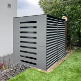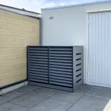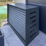 La copertura è realizzata in HPL con una superficie resistente ai raggi UV e agli agenti atmosferici, la verniciatura appartiene al passato. Grazie alla sua struttura robusta, la nostra copertura protegge in modo affidabile da pioggia, sole e sporco. Il rivestimento respinge inoltre in modo affidabile la grandine, garantendo una solida protezione per qualsiasi unità di condizionamento dell'aria.
