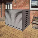 Il caldo si fa sempre più intenso e sempre più famiglie ricorrono ai condizionatori d'aria, ma raramente questi apparecchi sono un elemento di spicco nel giardino di casa, in giardino o sul patio. È qui che entra in gioco la nostra copertura di design. Unisce un design moderno e minimalista a vantaggi funzionali: Grazie alle sue linee pulite e all'intramontabile colore grigio medio, la copertura si inserisce armoniosamente in qualsiasi ambiente, creando allo stesso tempo un'impressione di ordine e stile. Le feritoie anteriori e le prese d'aria laterali assicurano un'aspirazione e uno scarico sufficienti. Le dimensioni del rivestimento si basano sulle dimensioni dell'apparecchio, in modo da poter coprire qualsiasi apparecchio, indipendentemente dal produttore. Sul nostro sito web è disponibile un calcolatore per questo scopo.