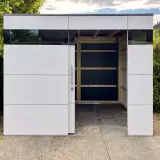 Con una forma chiara, vetri ESG a filo e una porta scorrevole facile da usare, il design rimane funzionale e senza tempo. All'interno, la tecnologia, gli scaffali o i ganci possono essere fissati direttamente alla sottostruttura, senza alcuno sforzo aggiuntivo. Chi ama le piante, apprezza l'ordine e vuole utilizzare lo spazio in modo intelligente, troverà qui la soluzione giusta. La nostra casetta da giardino è un vero miracolo di spazio anche in formato mini.