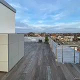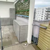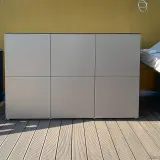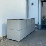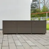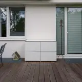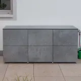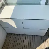 Questo mobile da terrazza ha un design volutamente essenziale e moderno, che si adatta perfettamente a una terrazza pulita e ordinata. Non solo il frontale è interessante, ma anche il retro: il mobile è rifinito con cura su tutti i lati e può quindi essere posizionato liberamente, senza dover nascondere il "lato brutto". Il motivo risiede nel concetto dei materiali: l'intero mobile da terrazza è realizzato interamente in Trespa HPL da 13 mm, compresi il pannello posteriore e i ripiani. È proprio questa coerenza a garantire una superficie dall'aspetto ricco, una sensazione tattile di alta qualità e un'immagine complessiva che convince anche da lontano.