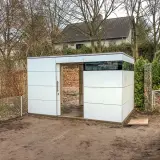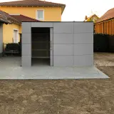 Zum Herbstbeginn heißt es wieder: mit unseren Outdoor-Lösungen gut gerüstet in die kühlere Jahreszeit starten. Dieses Gartenprojekt zeigt, wie funktional und zugleich elegant Stauraum im Außenbereich sein kann. Das XXL-Gartenhaus in edlem Silbergrau bietet nicht nur beeindruckend viel Platz, sondern auch die ideale Lösung, um Geräte, Gartenutensilien oder Möbel wettergeschützt zu verstauen. Mit seinen großzügigen Maßen und der hochwertigen HPL-Verkleidung fügt sich das Gartenhaus harmonisch in den Garten ein, modern, robust und pflegeleicht zugleich. Dank der langlebigen Materialien bleibt das Haus dauerhaft farbstabil, UV-beständig und wartungsfrei, ganz ohne Streichen oder Nachbehandeln.