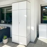 Gartenschrank @win H XL 130, b 130 cm x t 60 cm x h 190 cm auf Dachterrasse, Farbe Weiß
