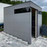 Ein Gartenhaus aus HPL in Anthrazit hält, was es verspricht: höchste Widerstandsfähigkeit gegen Sonne, Regen und Frost – und das dauerhaft. Dank der UV- und witterungsbeständigen Oberfläche ist HPL ideal für den Außenbereich geeignet. Auch bei starker Sonneneinstrahlung bleibt die Farbe intensiv, die Platten formstabil und die Oberfläche leicht zu reinigen.
