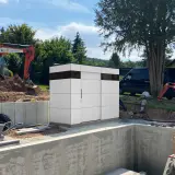 So entsteht eine technisch saubere und optisch ordentliche Lösung: Das Pool-Technik-Haus nimmt die komplette Pooltechnik auf, der vorbereitete Standort für die Wärmepumpe liegt direkt daneben – und der Poolbereich bleibt frei von sichtbarer Technik, Kabeln oder provisorischen Lösungen.