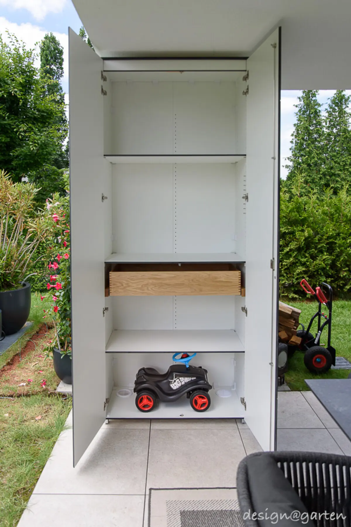 Der Stauraum Terrasse lässt sich durch einen wetterfesten Schrank optimal nutzen. Die Schränke fügen sich harmonisch in die Außengestaltung ein und bieten gleichzeitig praktische Funktionalität für den täglichen Gebrauch. Die hochwertige Verarbeitung garantiert dabei eine lange Lebensdauer ohne Qualitätseinbußen durch Wettereinflüsse.